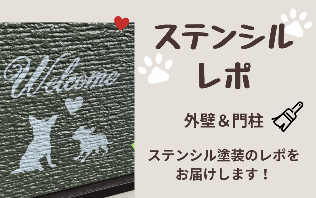 今回は外壁にご家族のワンちゃんのシルエット&文字のステンシル塗装と