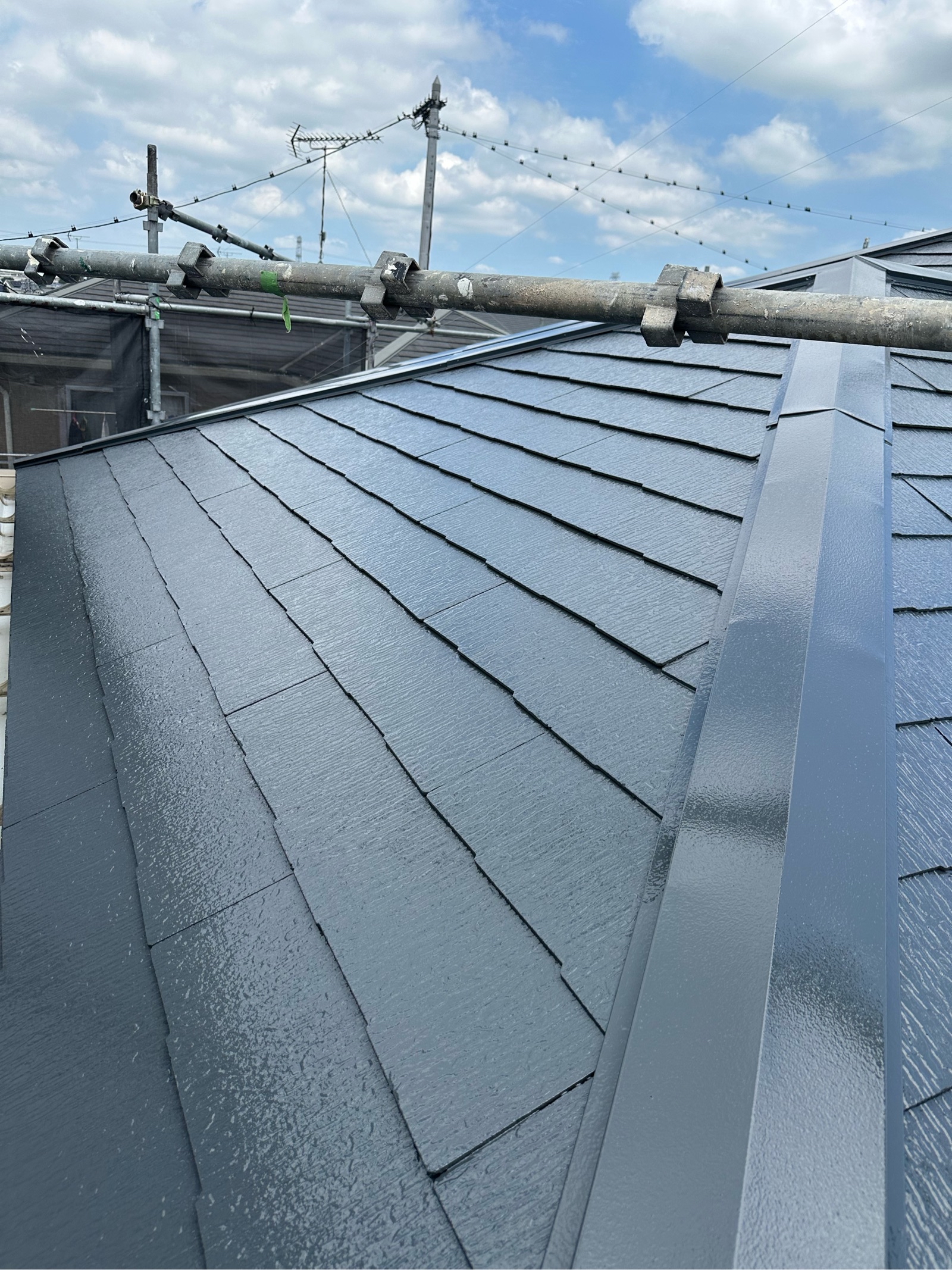 坂戸市片柳にて外壁・屋根塗装を施工!外壁は3色で塗り分けしました!幕板を締め色にモダンで素敵な仕上がりに!遮熱塗料使用