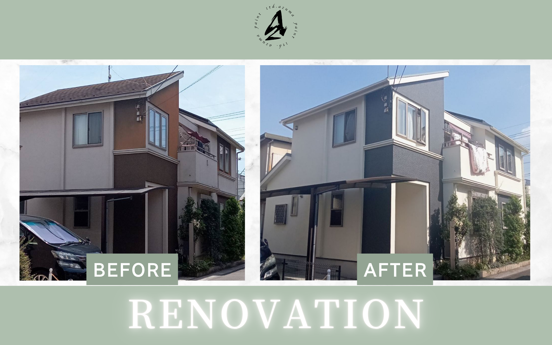関西ペイントのラグゼMUKIシリーズでアクセント塗分け塗装を鶴ヶ島市上広谷にて施工させていただきました!屋根は遮熱!