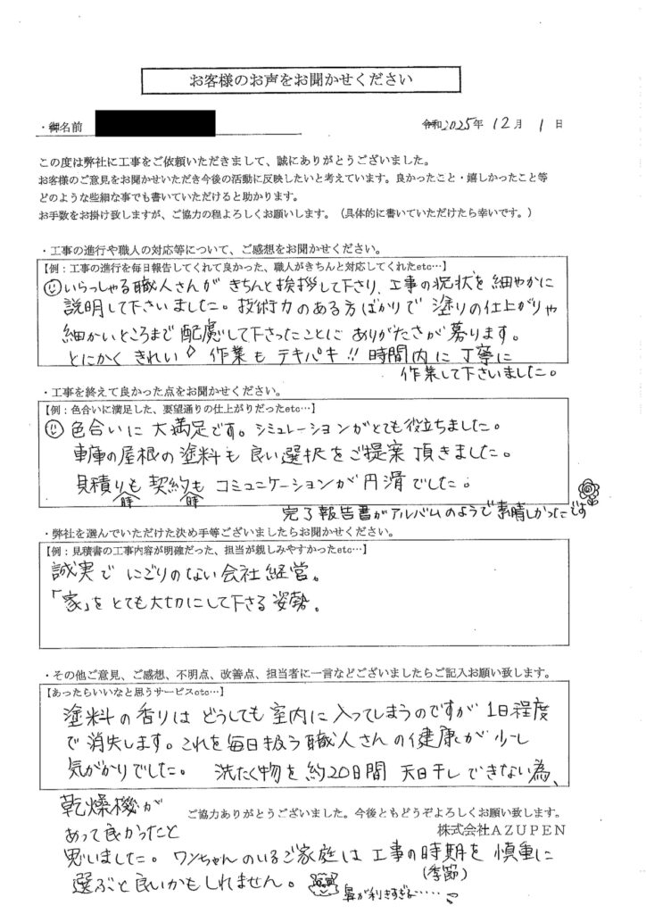 この度は数ある塗装業者の中より、弊社にご依頼いただき誠にありがとうございました。