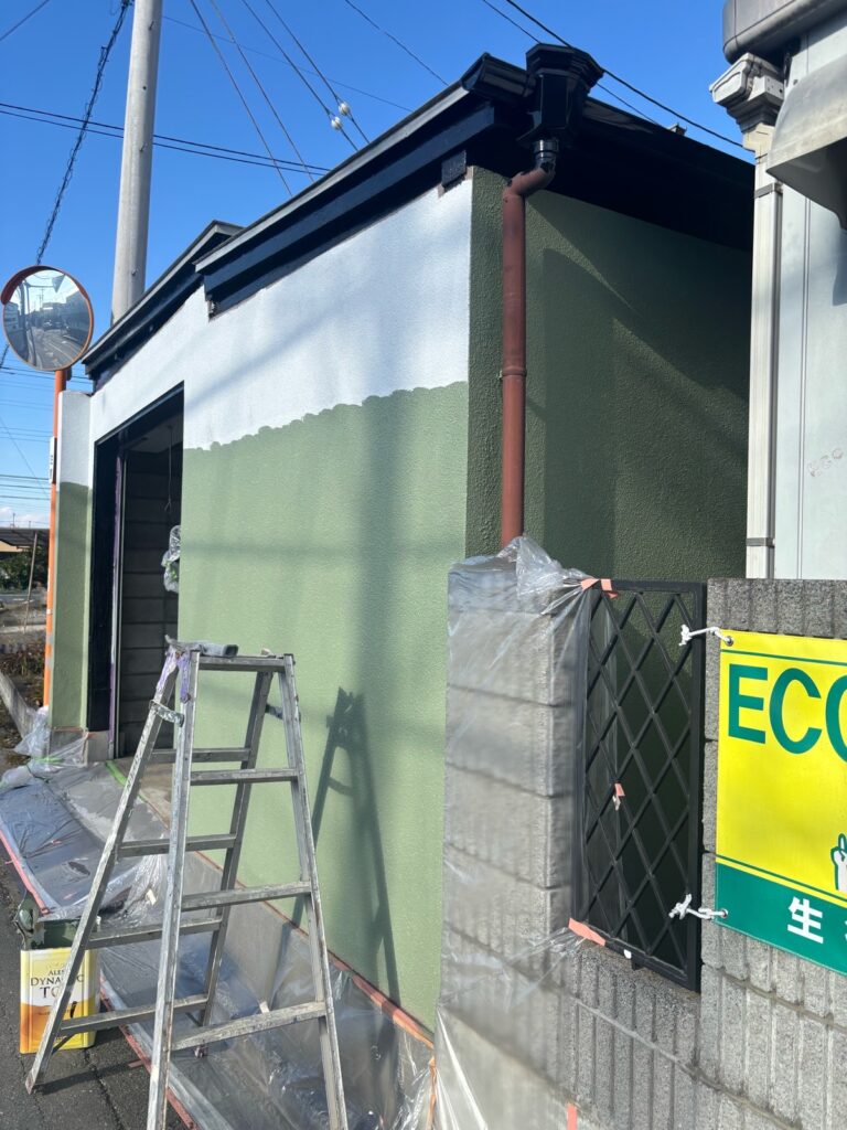 外壁は35-70Aで全体の塗装を、アクセントを35-40Bで仕上げました。