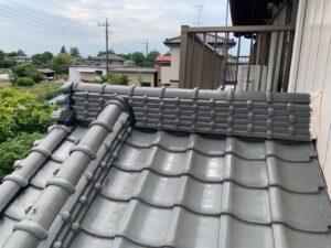 瓦屋根もメンテナンスが必要!瓦屋根の漆喰修繕工事を川島町松永にて施工!波板・雨戸の塗装も!