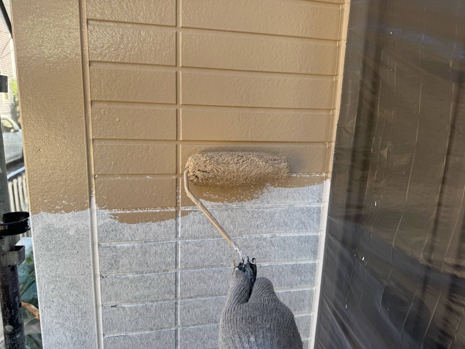 坂戸市千代田にて屋根壁の遮熱塗装!屋根はCOOLレベル高の『フォグブルー』で塗装!ベージュと鮮やかなブルーの組み合わせ◎
