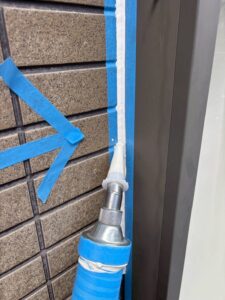 坂戸市千代田にて屋根壁の遮熱塗装!屋根はCOOLレベル高の『フォグブルー』で塗装!ベージュと鮮やかなブルーの組み合わせ◎