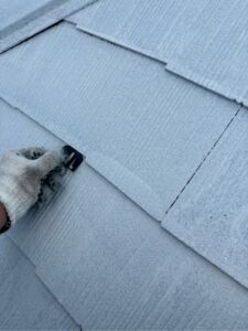 坂戸市千代田にて屋根壁の遮熱塗装!屋根はCOOLレベル高の『フォグブルー』で塗装!ベージュと鮮やかなブルーの組み合わせ◎