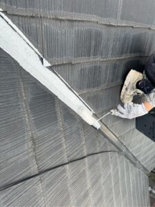 坂戸市千代田にて屋根壁の遮熱塗装!屋根はCOOLレベル高の『フォグブルー』で塗装!ベージュと鮮やかなブルーの組み合わせ◎