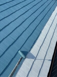 坂戸市千代田にて屋根壁の遮熱塗装!屋根はCOOLレベル高の『フォグブルー』で塗装!ベージュと鮮やかなブルーの組み合わせ◎