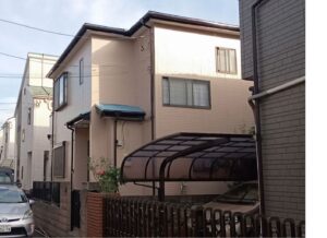 坂戸市千代田にて屋根壁の遮熱塗装!屋根はCOOLレベル高の『フォグブルー』で塗装!ベージュと鮮やかなブルーの組み合わせ◎
